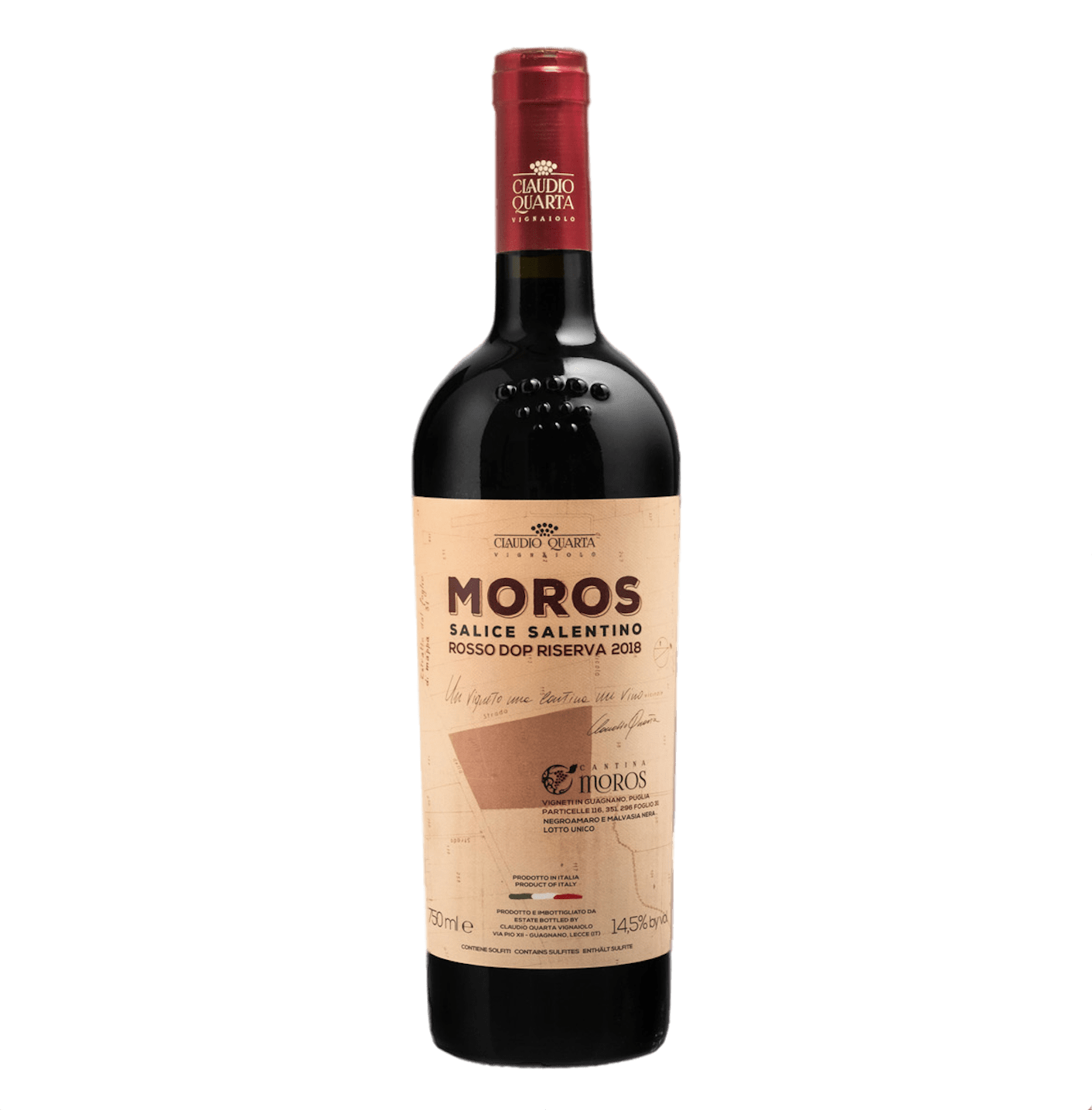Moros est le produit phare du domaine Claudio Quarta. Fort d'une longue expérience dans la production viticole, Claudio Quarta a obtenu de nombreuses récompenses internationales pour ce vin rouge exceptionnel.