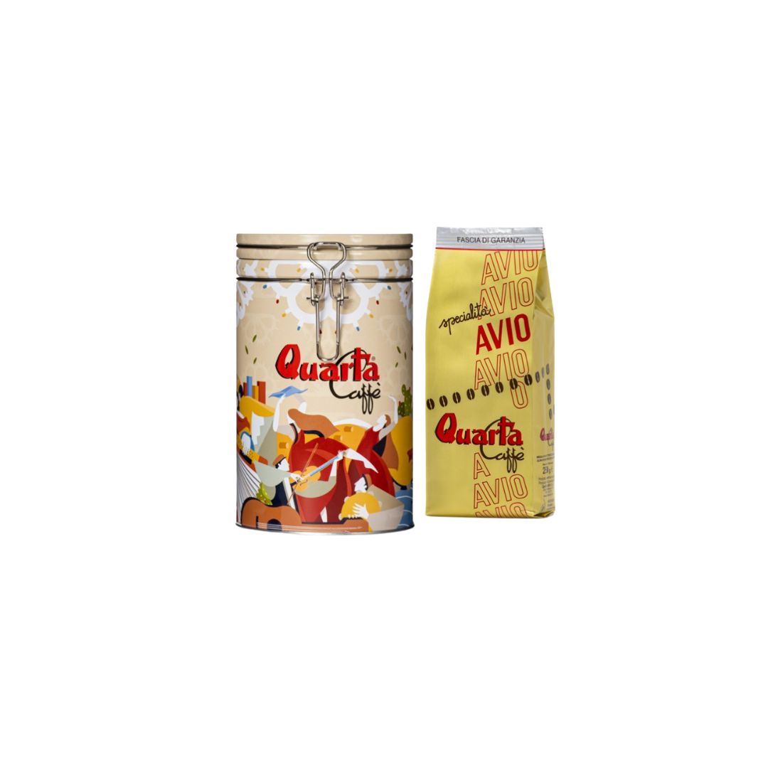 Quatrième pot de café avec 250 g de mélange Avio Gold inclus à l'intérieur ;